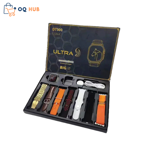 The DT900 ULTRA 9 Smart Watch exudes sophistication with its luxurious golden, silver, and black-themed design, making it a perfect accessory for every occasion.